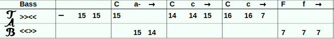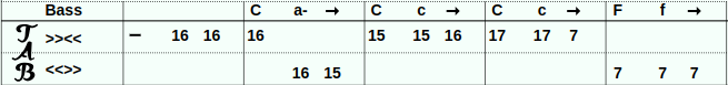 As you can see, we use letters from the "Chord Notation System", in accordance with our conventions, to represent the basses, just as, to represent the notes of the melody, we use numbers (with or without apostrophes) in the manner described for this format.